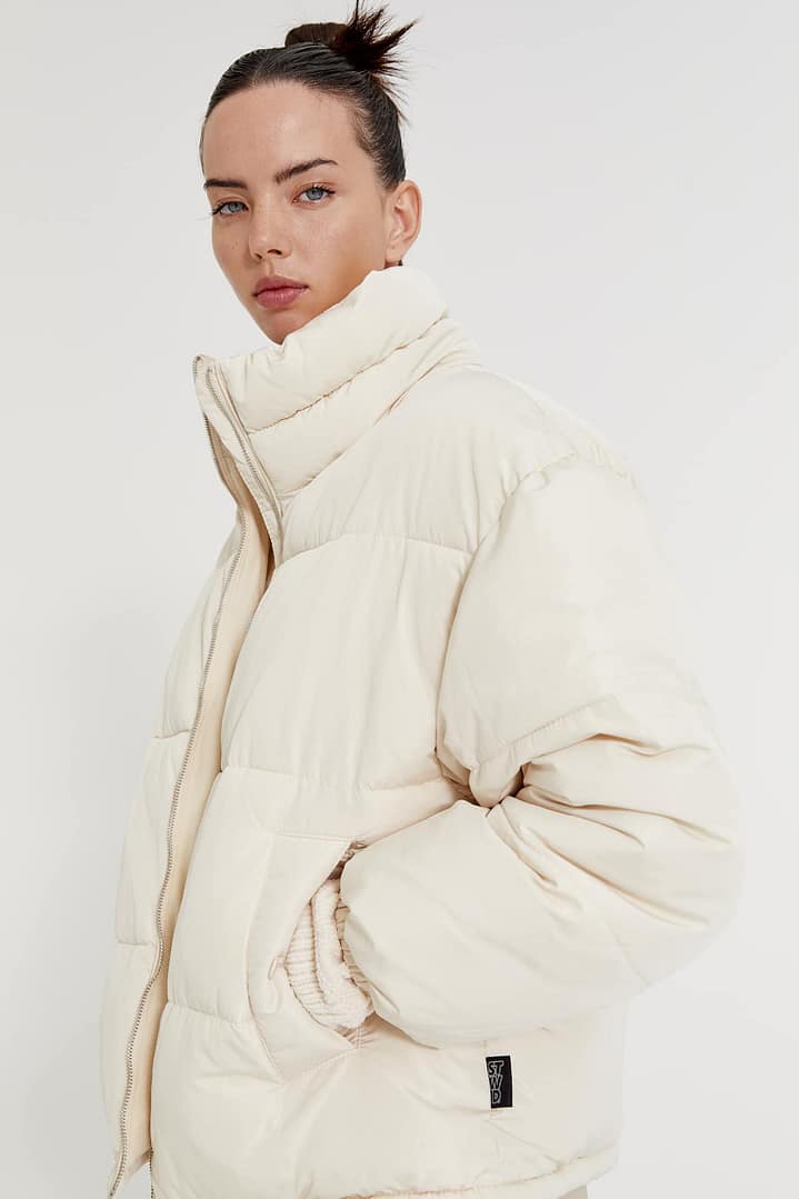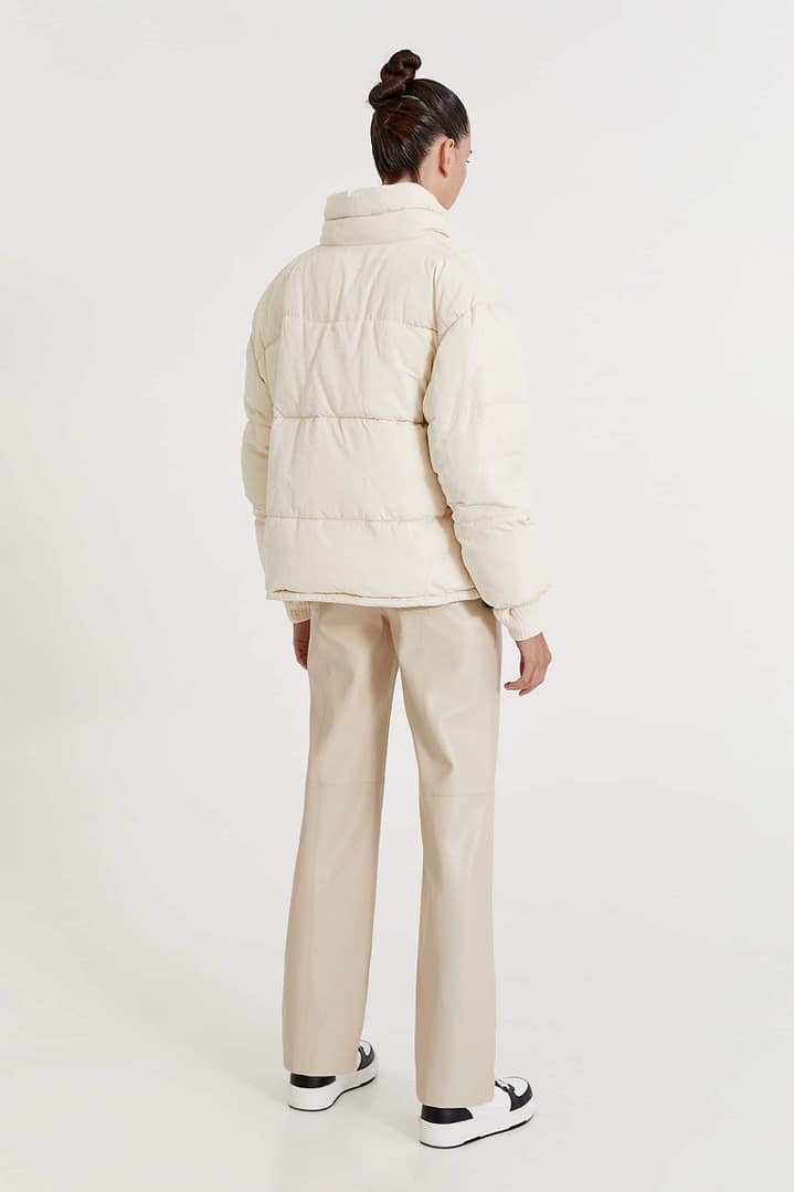 Perfecta para el frío, esta chaqueta puff ofrece un equilibrio ideal entre calidez y ligereza. Su diseño minimalista y cuello alto la convierten en una prenda versátil, ideal para combinar con cualquier outfit casual o elegante.
