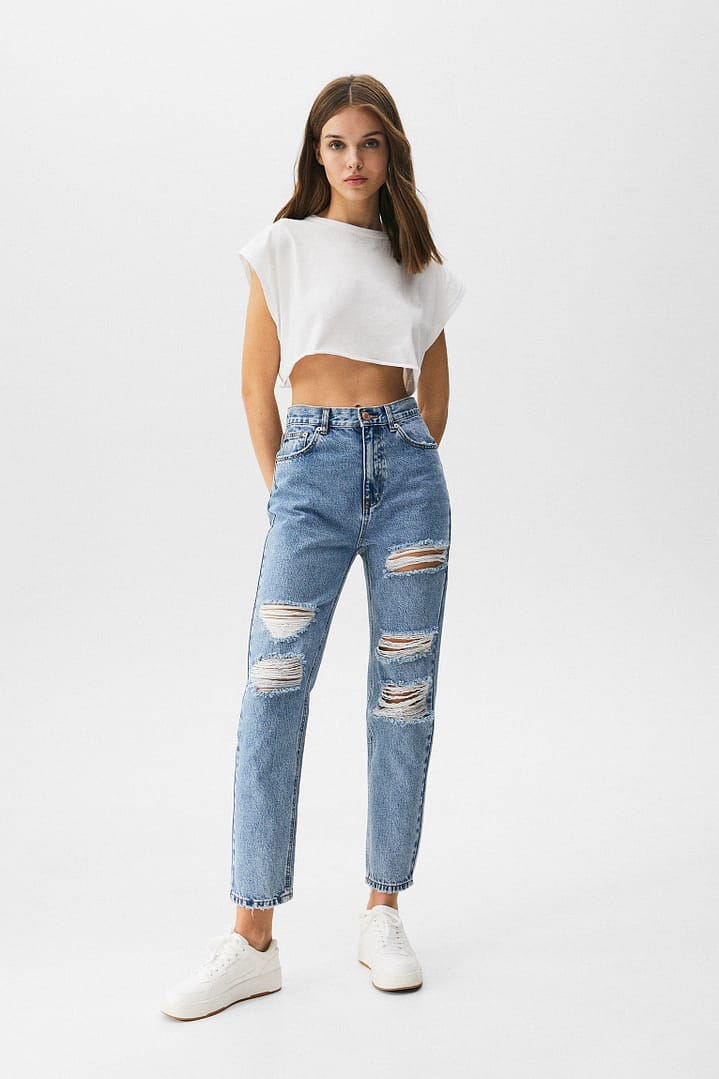 1 valoración en Jeans Mom rotos – Contiene algodón reciclado